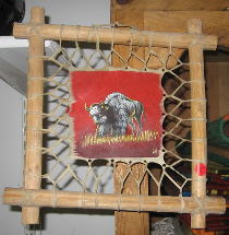 | rawhide drum 24" "dia. x 4'"thick decorated with cowhide border $100.00 |