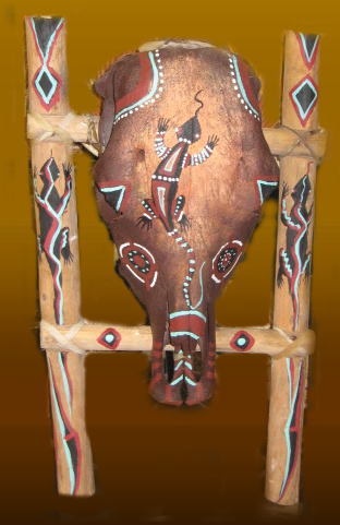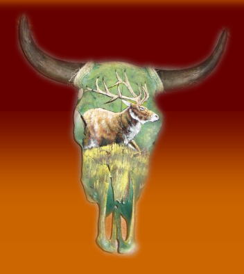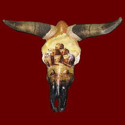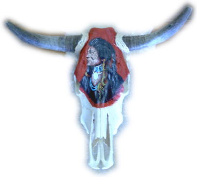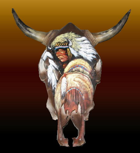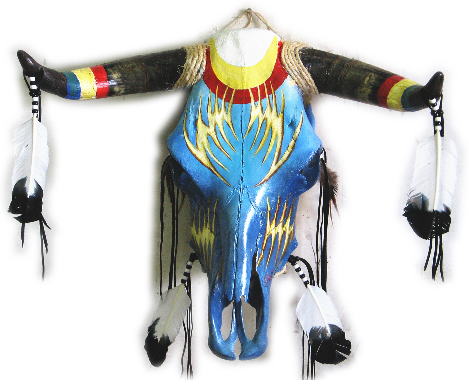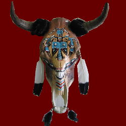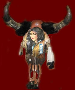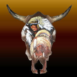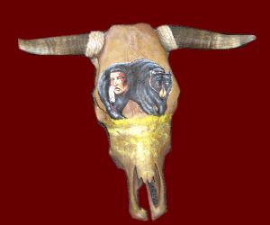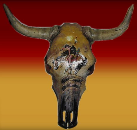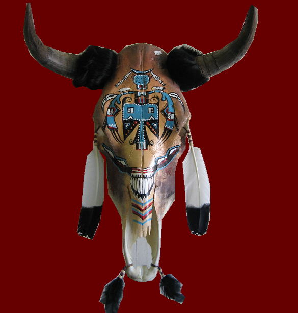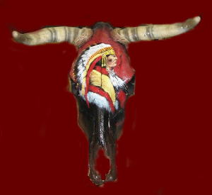 Indian art on cow skull or buffalo